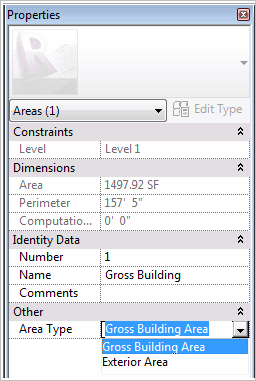 When in a Gross Area Plan, Revit will limit Area objects to be defined as either a Gross Building Area or as an Exterior Area using the following criteria: