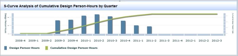 The following screen shot shows the S-Curve for person-hours for a project superimposed onto a bar chart showing non-cumulative person-hours by quarter.